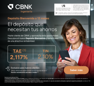 12 Abr Actualidad CBNK Posted at 13:00h in Actualidad, Noticias by Ccaminos Depósito Bienvenida a 12 meses. (Actualización abril 2026) Oferta válida hasta agotar emisión de 20 millones de euros. Exclusivo para persona física. Más información